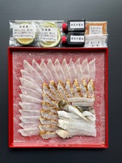 内容量◉とらふぐ刺身25g・まふぐ焼霜刺身25g・とらふぐ湯引き皮30g・